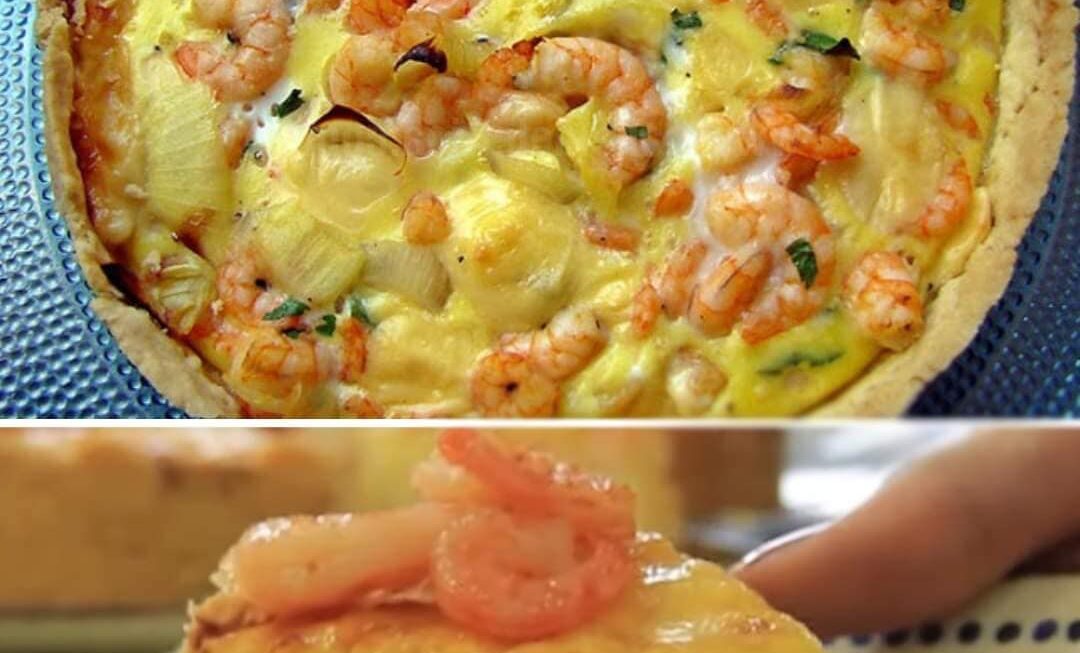 Incorporer les crevettes sautées et mettre la préparation sur le fond de tarte, déjà cuit.