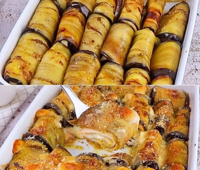 3. Faites-les cuire dans une poêle pour les ramollir. Déposer les tranches de blanc de poulet sur les aubergines cuites, mettre un morceau de fromage sur une face et rouler.