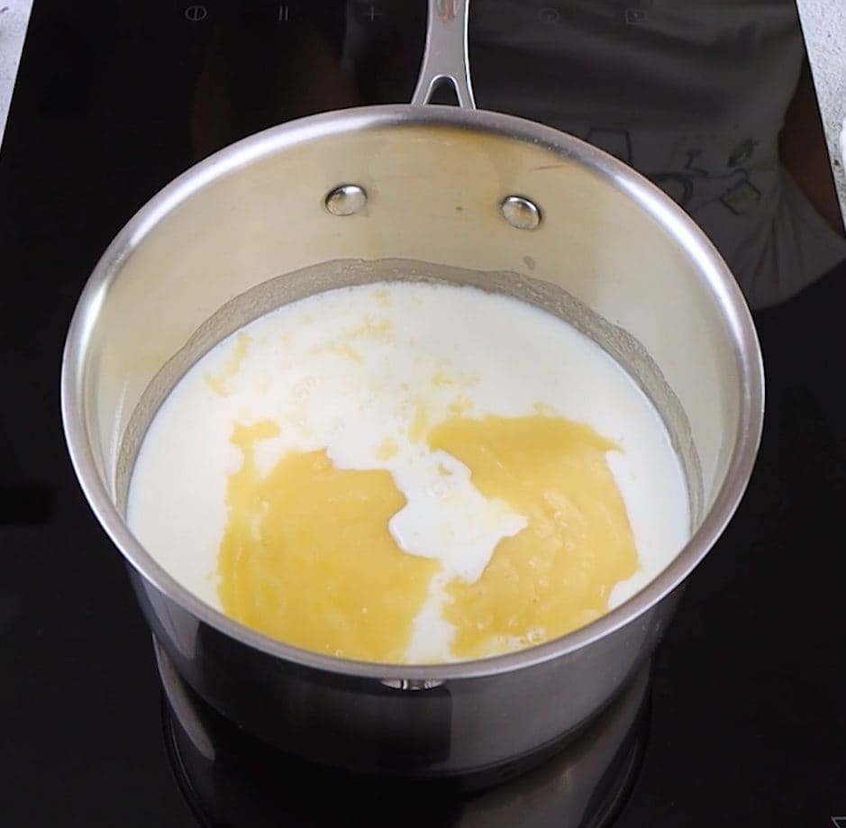 Ajouter le lait et remuer pendant la cuisson jusqu’à ce que la sauce soit épaisse et crémeuse.