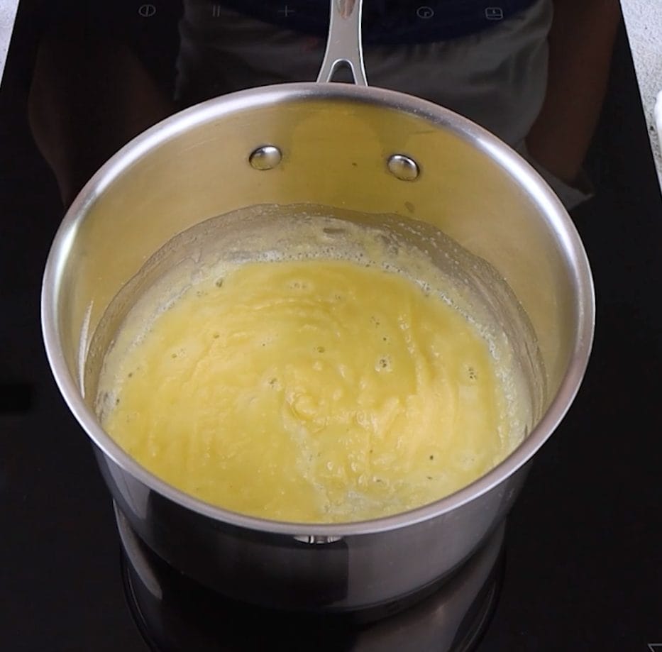 Faire fondre le beurre dans une casserole à feu moyen. Ajoutez la farine et mélangez.