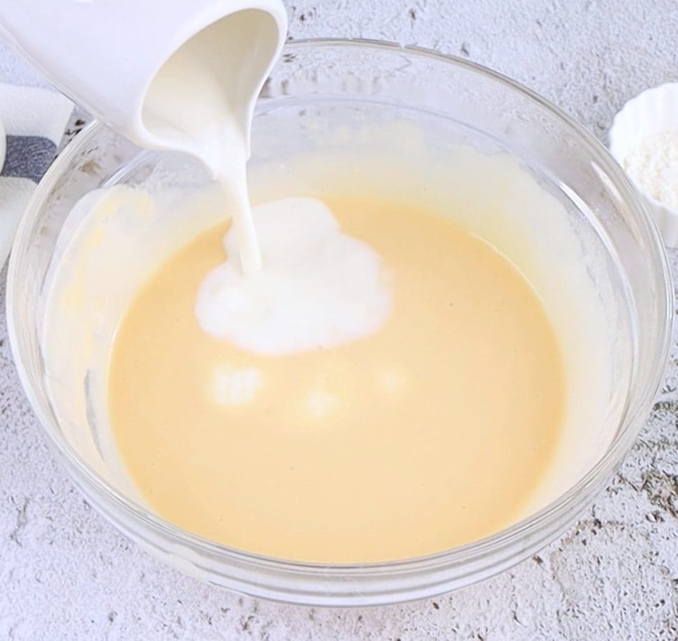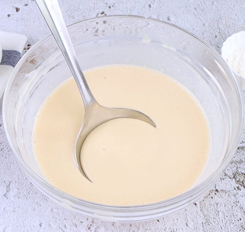 Dans un grand bol à mélanger, ajoutez la farine, le sel, les œufs et le lait et mélangez au fouet.
