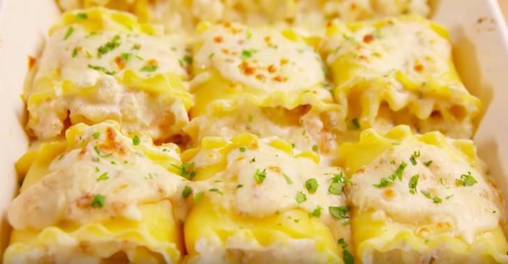 Sur les pâtes, étaler une couche de ricotta, puis une couche du mélange de crevettes.