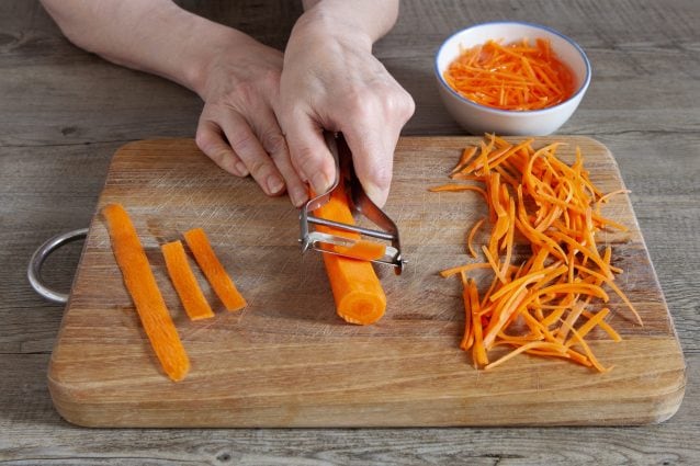 Pour de meilleurs résultats, nous vous suggérons de recueillir les légumes, au fur et à mesure qu’ils sont tranchés, dans un bol d’eau glacée acidulée au jus de citron : ainsi ils ne noirciront pas et resteront fermes et croquants.