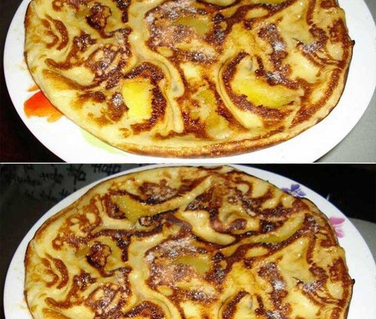 Laissez cuire la crêpe aux pommes pendant environ 5 minutes, puis retournez-la et poursuivez la cuisson pendant 3 à 4 minutes de l’autre côté. La crêpe doit être dorée et légèrement croustillante.