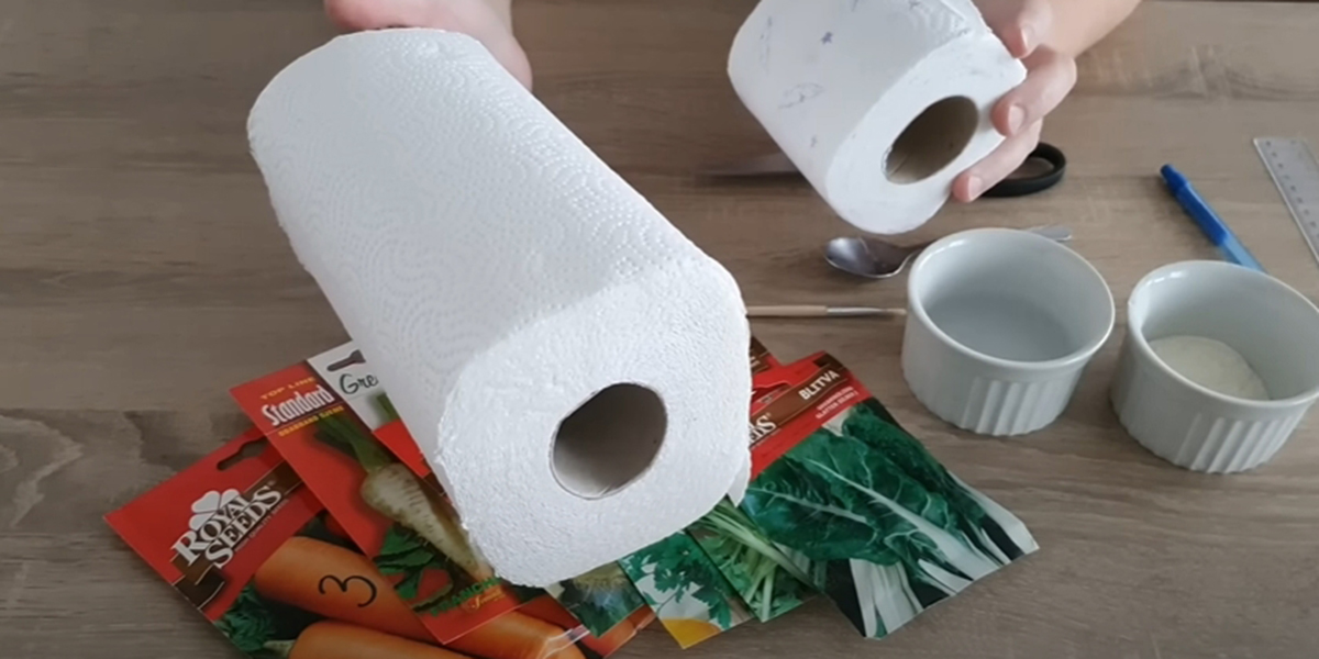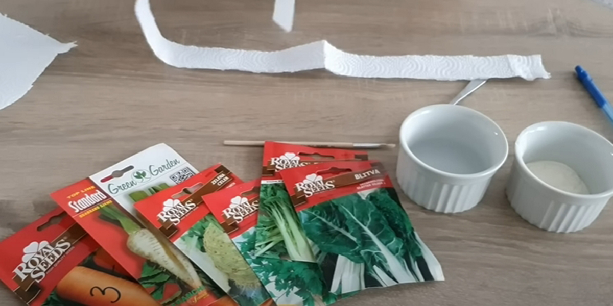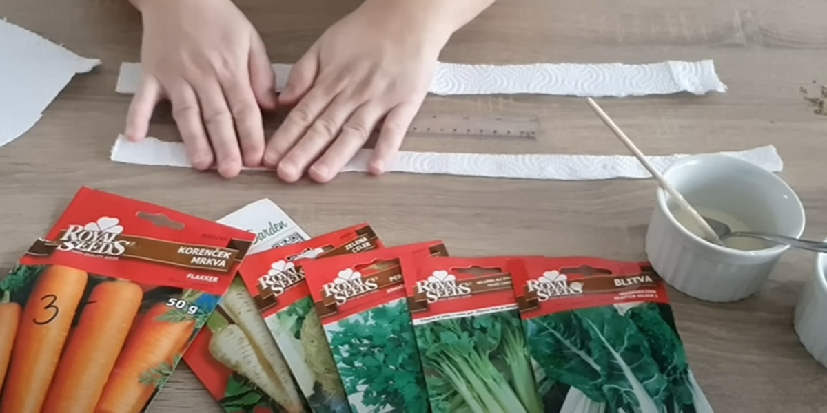 5. În final, pliați fâșia în jumătate și lipiți semințele între părți. Pentru a o duce în grădină, o puteți rula în formă de rulou.
