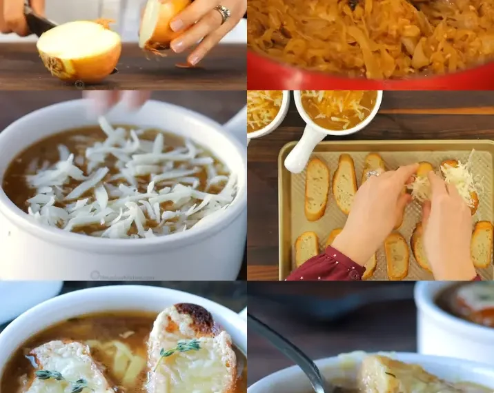 Saupoudrer le fromage Gruyère sur les croûtons et les faire fondre sous le gril.