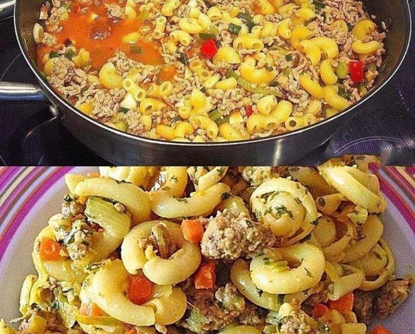 Cette recette simple et savoureuse de spaghettis sautés à la viande hachée et aux légumes