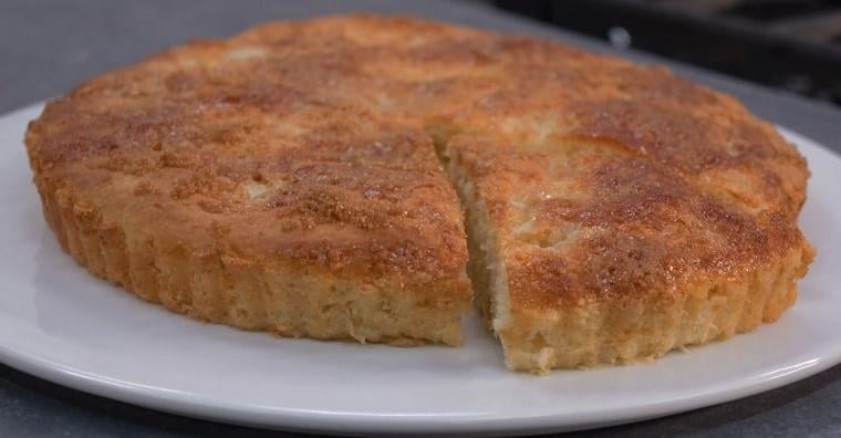 Piquez la pâte avec une fourchette, répartissez le sucre dessus et versez la préparation crème+oeuf