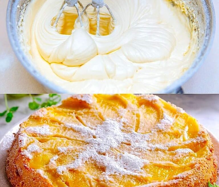 - Mettez de belles tranches de pomme et versez la pâte dessus, couvrez avec un couvercle
