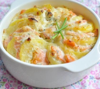 On prend le temps de se régaler avec une recette très facile à faire et délicieuse comme jamais, parfaite pour cette fin de saison : le gratin aux pommes de terre, au saumon fumé,