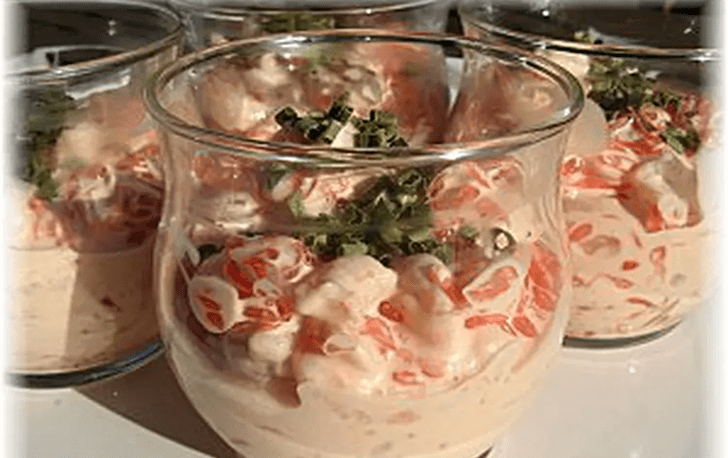 Alors une petite recette légére qui fera une entrée légère avec un sauce qui ne colle pas aux hanches… donc nous avons préparé ces petites verrines et les avons dégustées à l’apéritif!!!