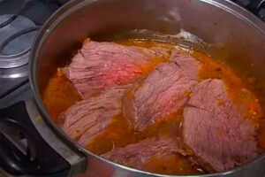 La viande dans le vin est un plat classique qui combine de la viande cuite lentement, du vin rouge et des aromates pour une saveur profonde et tendre. Le préparer dans une cocotte minute accélère le processus, ce qui donne une viande délicieuse et tendre en beaucoup moins de temps. C’est une option parfaite pour un repas réconfortant.