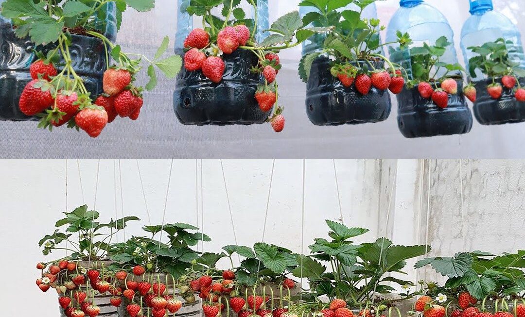 Como cultivar morangos sumarentos em recipientes de plástico de 5L para garrafas