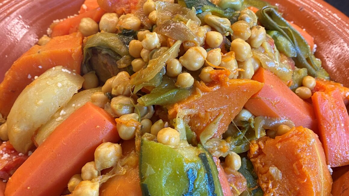 Etape8 : Après 30min de la cuisson de la viande, ajouter les légumes (carottes, courgette, potimarron et navets) et le bouquet de coriandre, laisser encore cuire 20min.