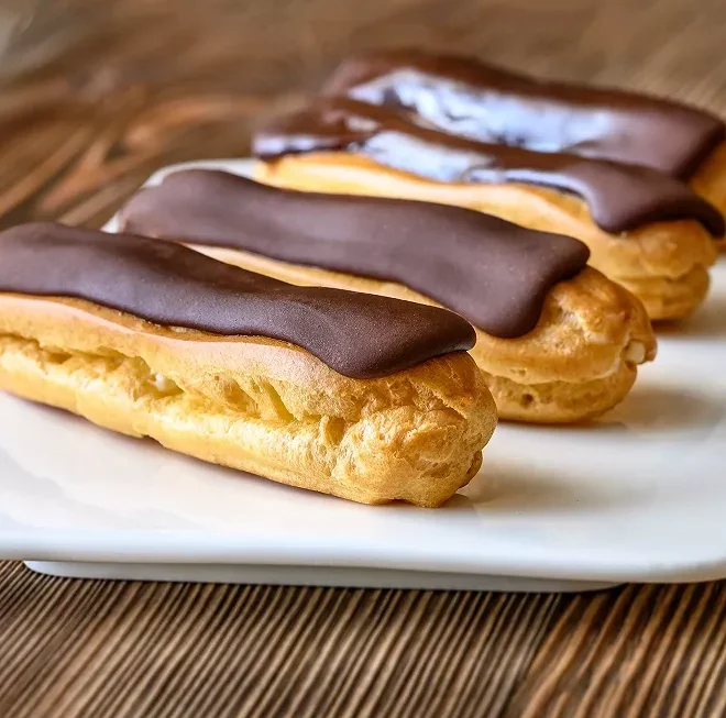2. Remplissage des Éclairs : Lors du remplissage des éclairs, percez délicatement la base en faisant trois petits trous. Cela permet une répartition uniforme de la délicieuse combinaison de crème pâtissière et de ganache au chocolat à l’intérieur.