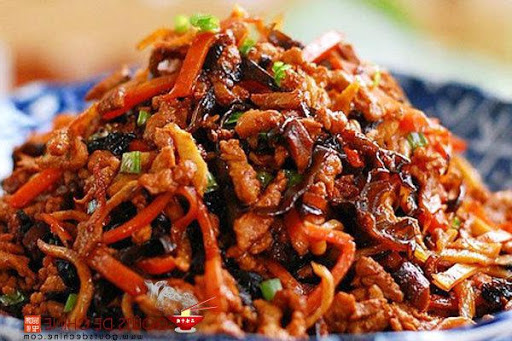 Etape7 : Puis les laisser dans un côté, et ajouter les morceaux d’ail, de ciboule et de gingembre. Les faire sauter jusqu’à ce que l’odeur sorte, puis les mélanger avec la viande.
