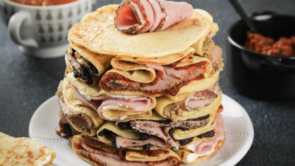 Comment faire un gâteau de crêpes salées à la charcuterie?