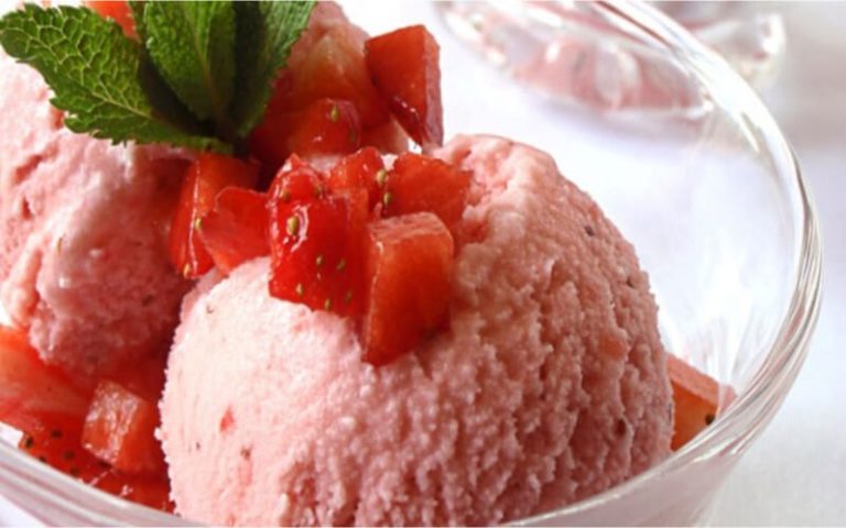 De plus, vous pouvez obtenir une crème glacée crémeuse même sans sorbetière , en utilisant un simple mélangeur Et voilà! Une superbe glace à la fraise, très simple à faire, bien onctueuse et délicieuse pour attirer vos convives! Vos enfants aussi l’adorent et surtout quand elle accompagne les desserts chocolatés et les biscuits.