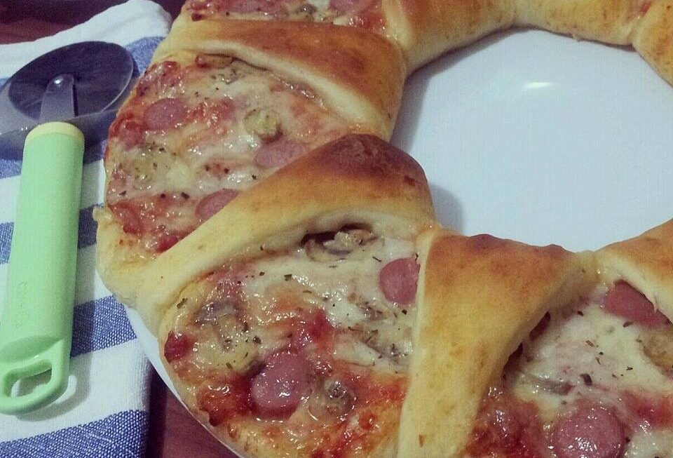 Voici une idée de pizza savoureuse et différente, c’est une pizza sous forme de couronne faite à base de pâte à brioche salée. A essayer sans tarder 🙂