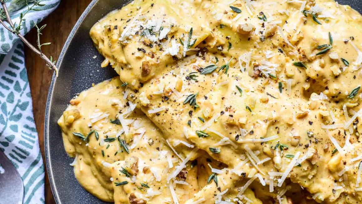 Est-il possible de rendre ce plat végétalien ? Oui, il est tout à fait possible de rendre ce plat végétalien. Remplacez la crème fraîche par du lait de coco ou une crème d’amande pour le velouté. Pour la garniture des raviolis, optez pour une alternative végétalienne à base de noix de cajou ou d’amandes à la place du fromage.