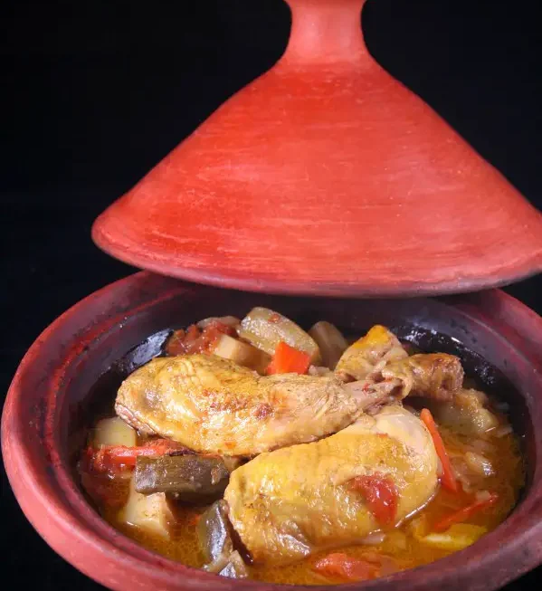 3. Pour une expérience authentique, servez le tajine de poulet avec des olives marinées et des quartiers de citron confit pour une explosion de saveurs méditerranéennes.