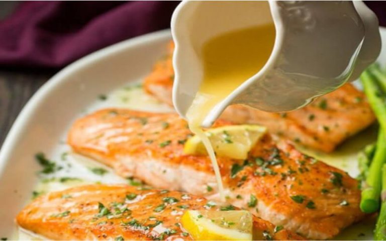 Ce plat de saumon crémeux au beurre à l’ail et au citron est plein de saveurs délicieuses. Le saumon juteux est cuit à la perfection et nappé d’une sauce crémeuse à l’ail et au citron qui apporte une touche acidulée à chaque bouchée.