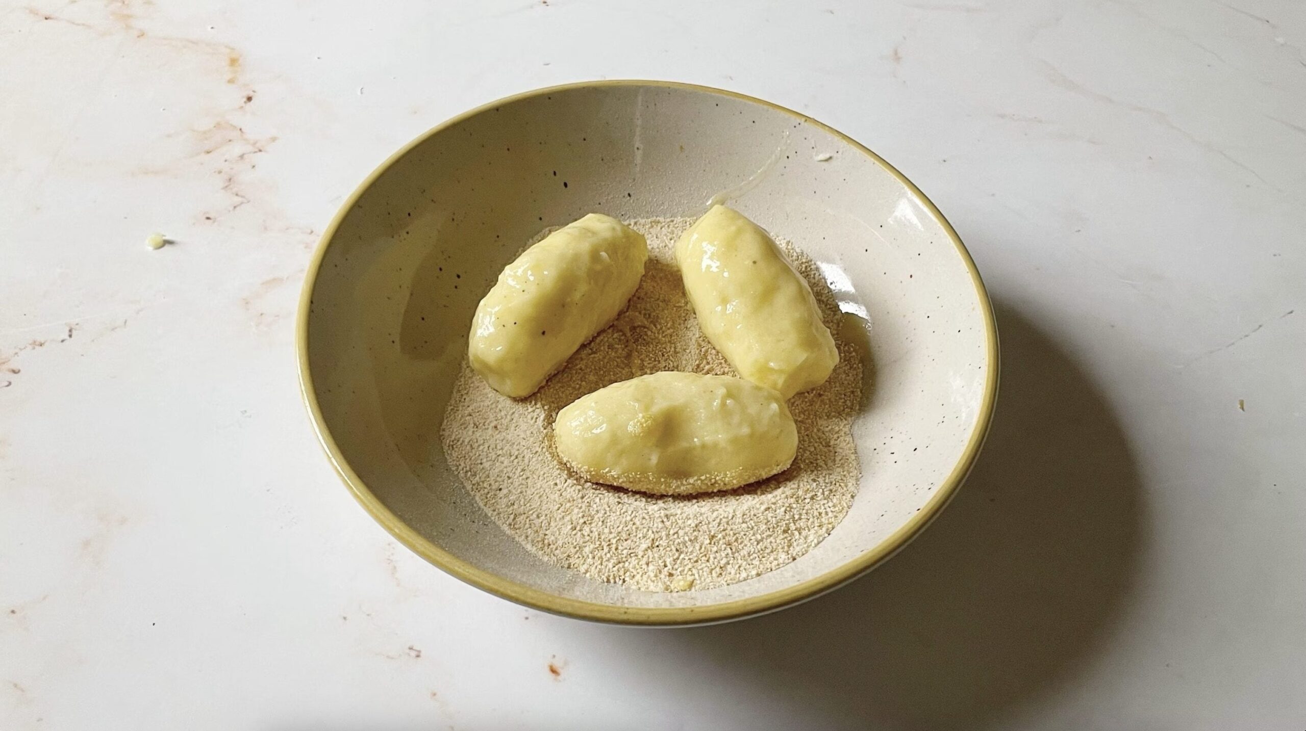 Roulez-le ensuite dans la chapelure en le faisant bien adhérer sur toutes les faces.