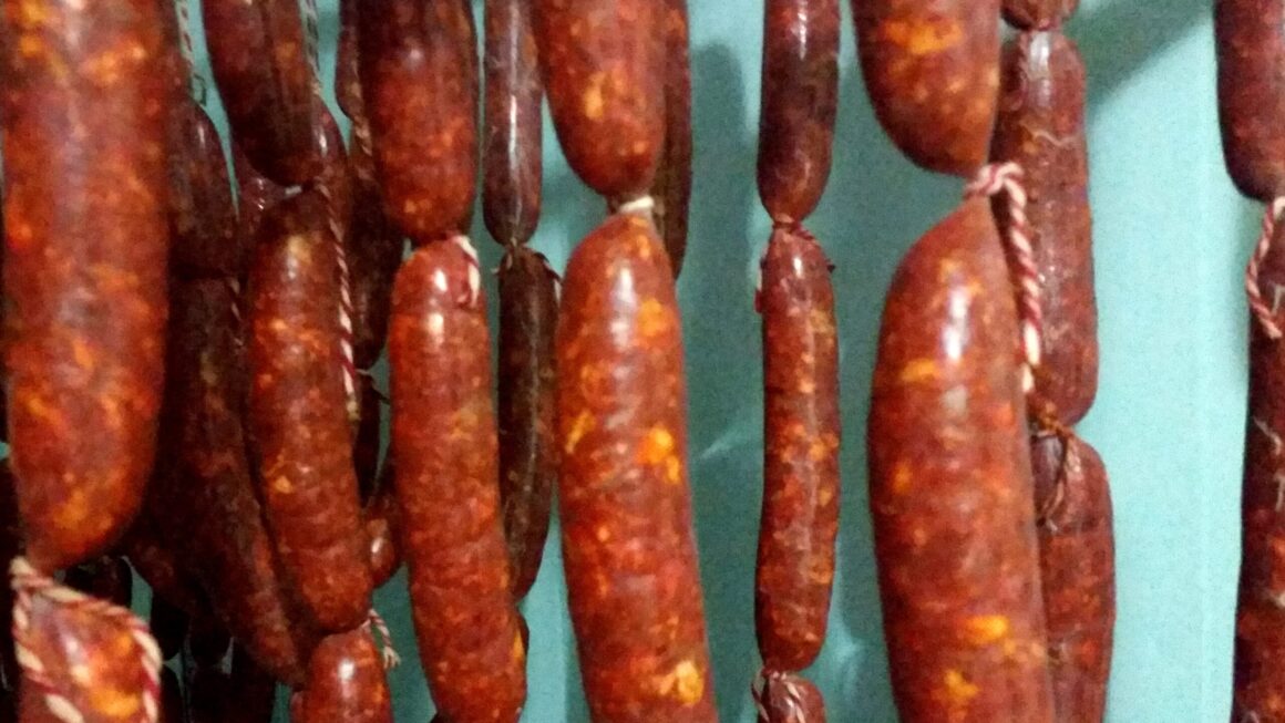 Le chorizo fait maison est une saucisse traditionnelle et populaire dans de nombreuses cultures gastronomiques. Sa préparation commence par la sélection de viandes maigres et de graisses de porc, qui sont coupées en petits morceaux et sont assaisonnées avec un mélange d’épices comme le paprika, l’ail, le cumin et l’origan, entre autres.
