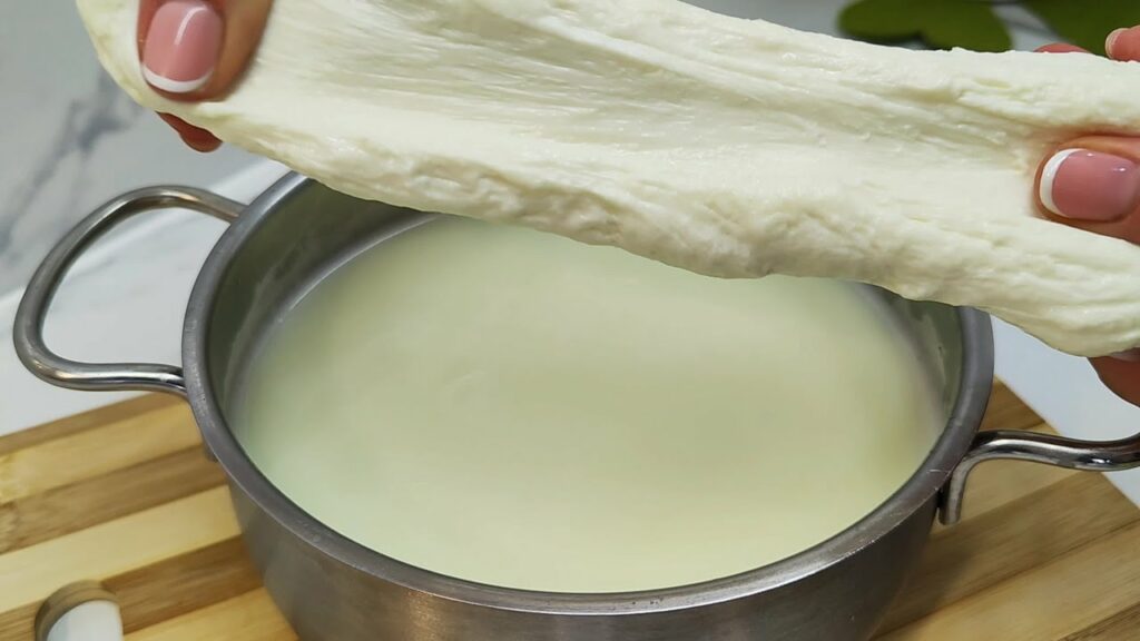 Mold and Stretch: Once drained, transfer the curds to a microwave-safe bowl. Microwave for about a minute, then fold and stretch the cheese until it’s smooth and elastic. If it cools too quickly, microwave it for an additional 30 seconds.