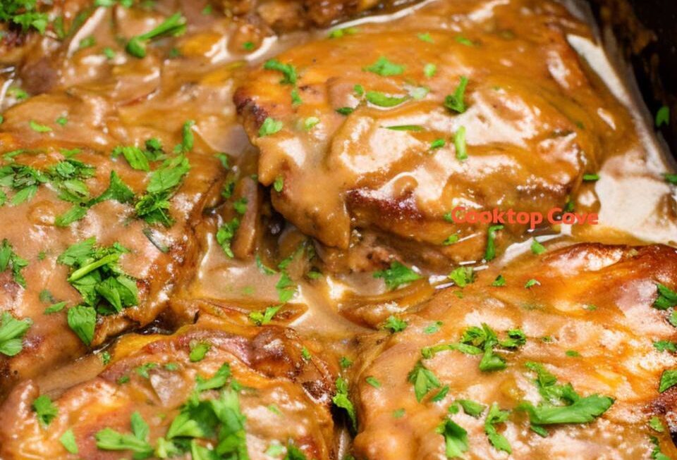 “Pork Chop Supreme” is a dish that typically consists of a pork chop that has been cooked and served with a creamy sauce, often made with ingredients like mushrooms, onions, and sour cream. The name “Pork Chop Supreme” likely originated as a way to describe a pork chop dish that was considered to be of particularly high quality or superior in flavor and presentation.