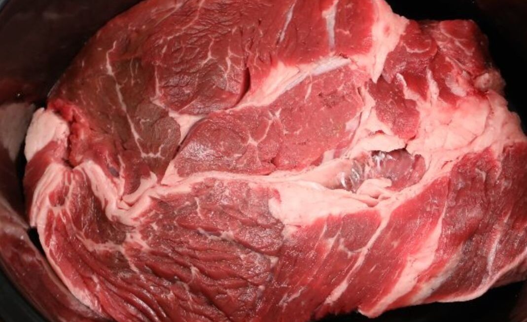 Nestle the beef chuck roast inside a generously greased slow cooker.